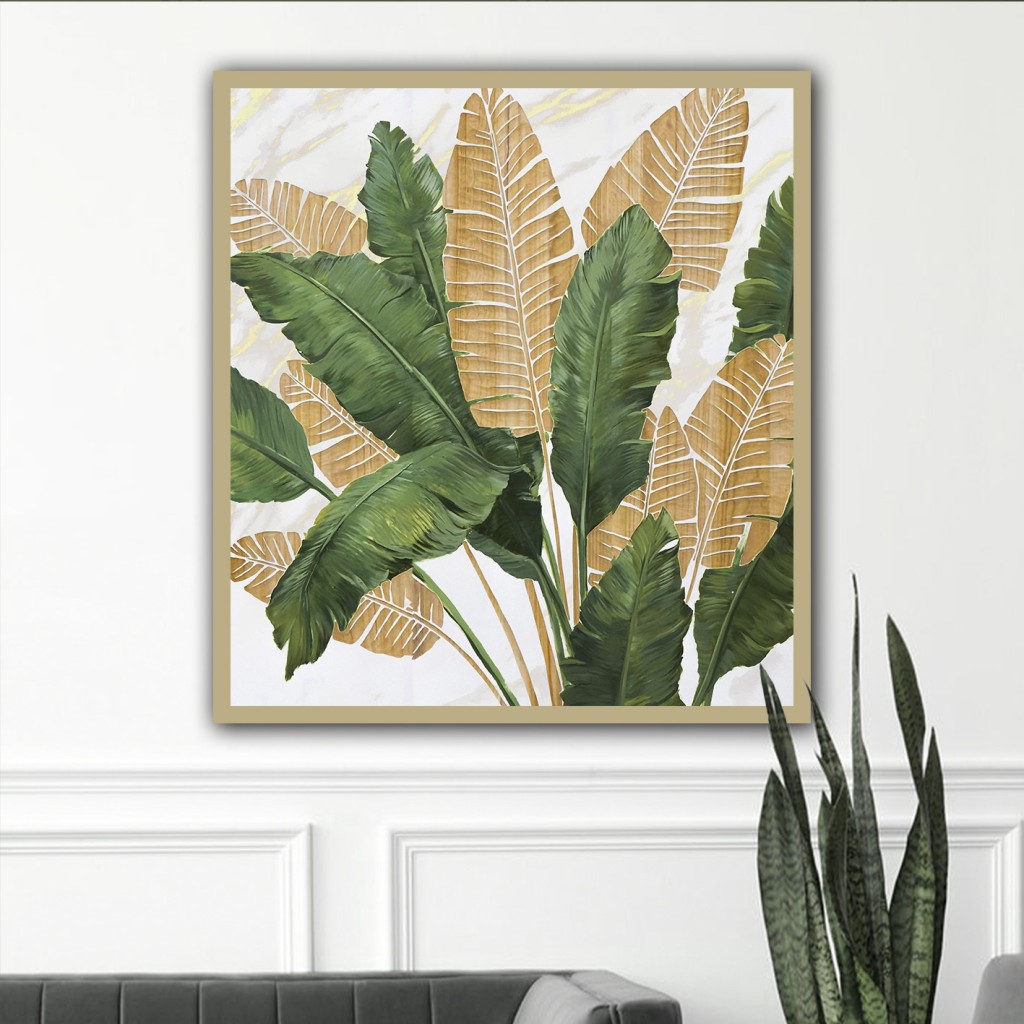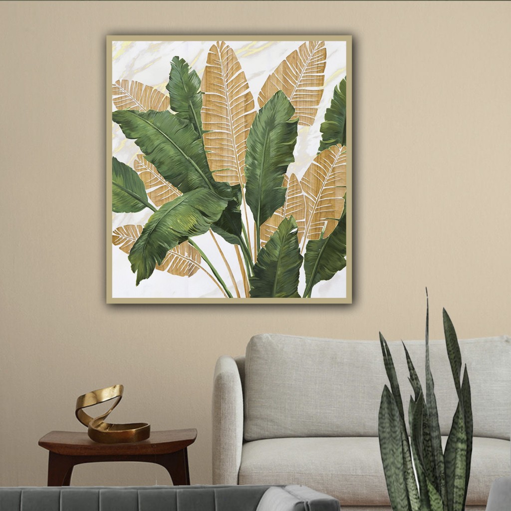 تابلو برگ های استوایی طلایی سبز