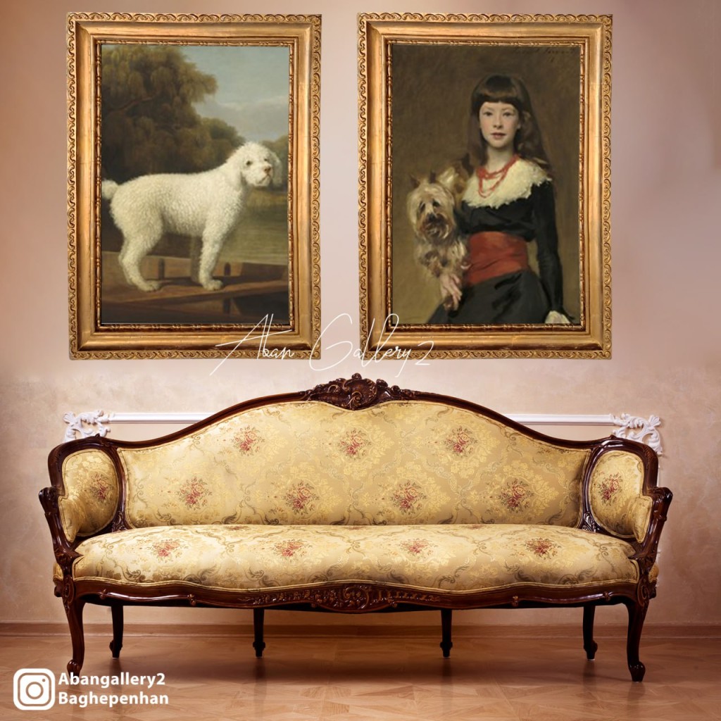 ست تابلو کلاسیک دختر جوان و سگ – نماد وفاداری و لطافت با قاب فاخر