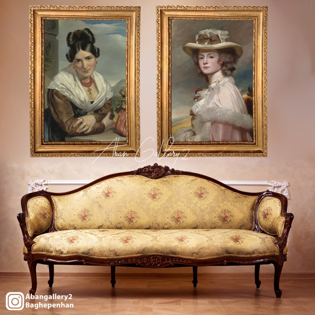 تابلو دو تیکه پرتره بانوی اشرافی با پسزمینه کلاسیک