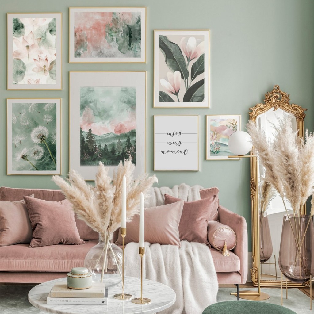 گالری وال لطیف طبیعت؛ هارمونی سبز نعنایی و صورتی پودری