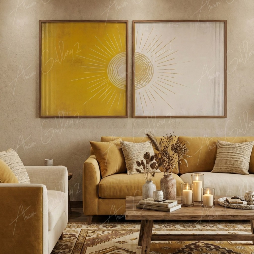 تابلو دوتکه خورشید مینیمال طلایی