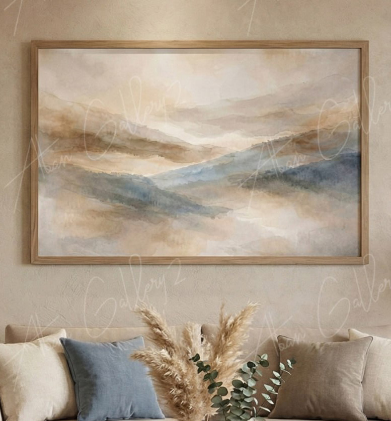 تابلو منظره آبستره مهآلود با تونالیته خنثی