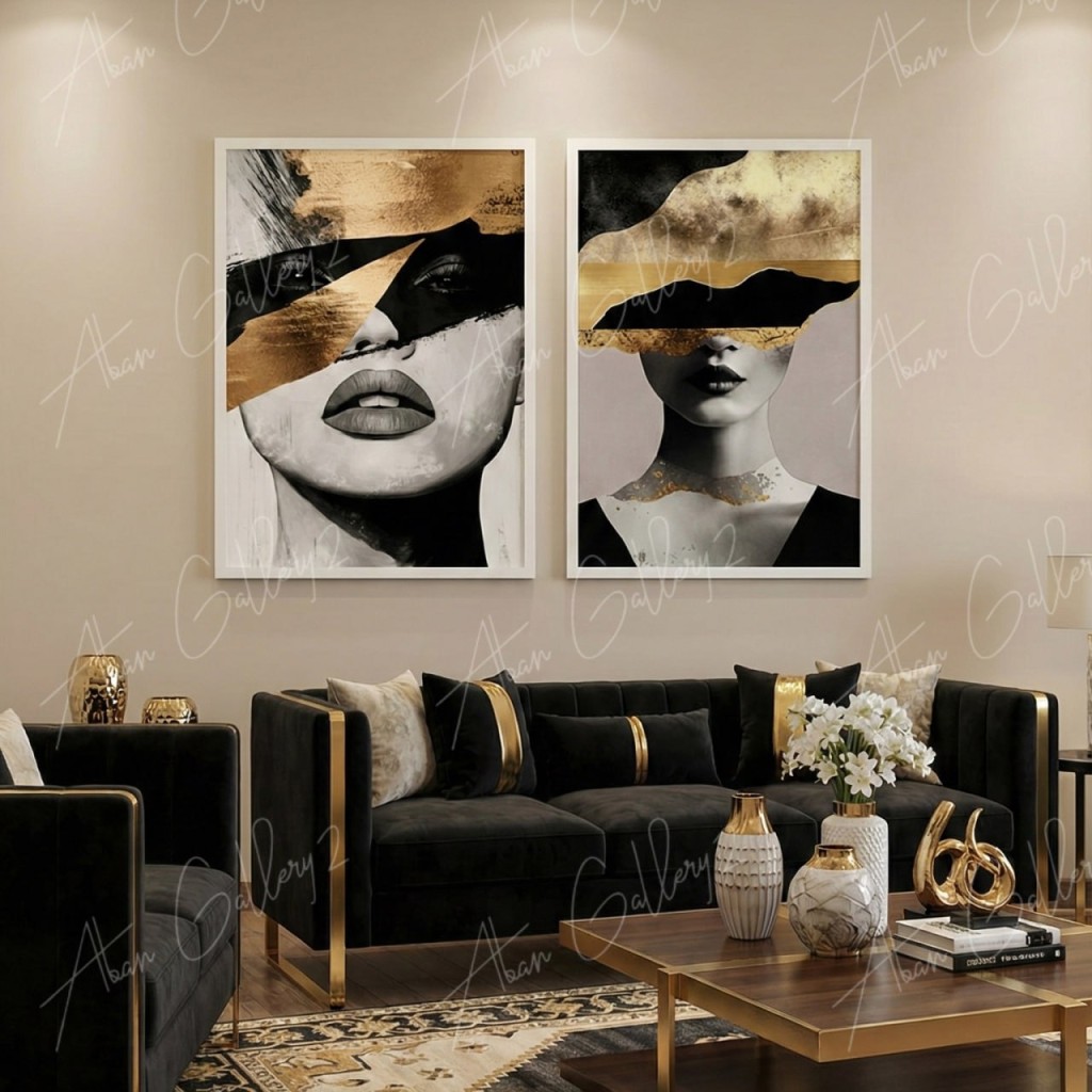 ست دوتایی تابلو مدرن طرح «نجواهای طلایی» - تلفیق مشکی و ورق طلا