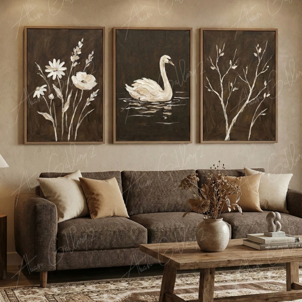 مجموعه ۳ عددی تابلوی دکوراتیو کلاسیک با تم قهوهای و کرم