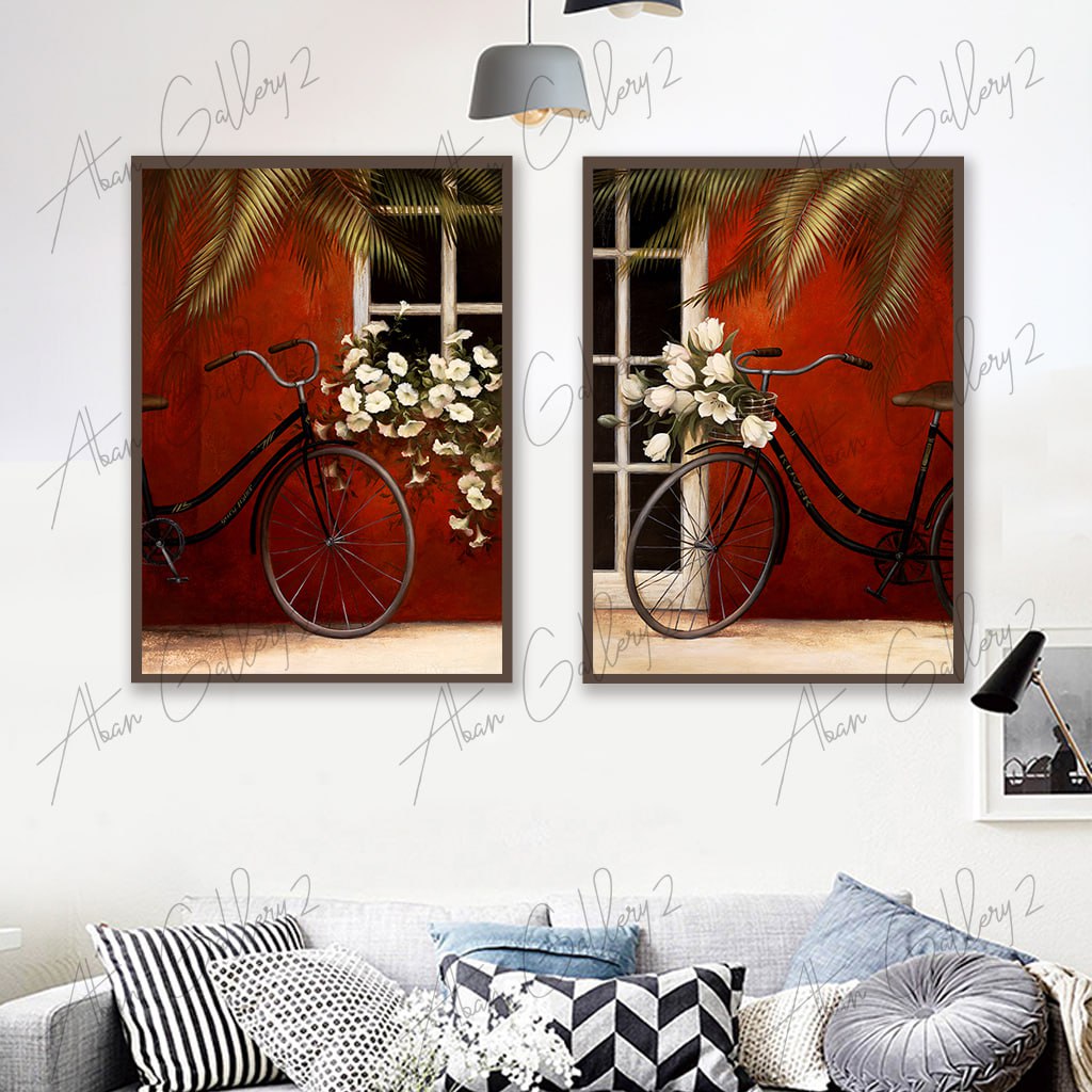 ست دوتایی تابلو دکوراتیو «خاطرات بهاری» - طرح دوچرخه و گلهای سفید